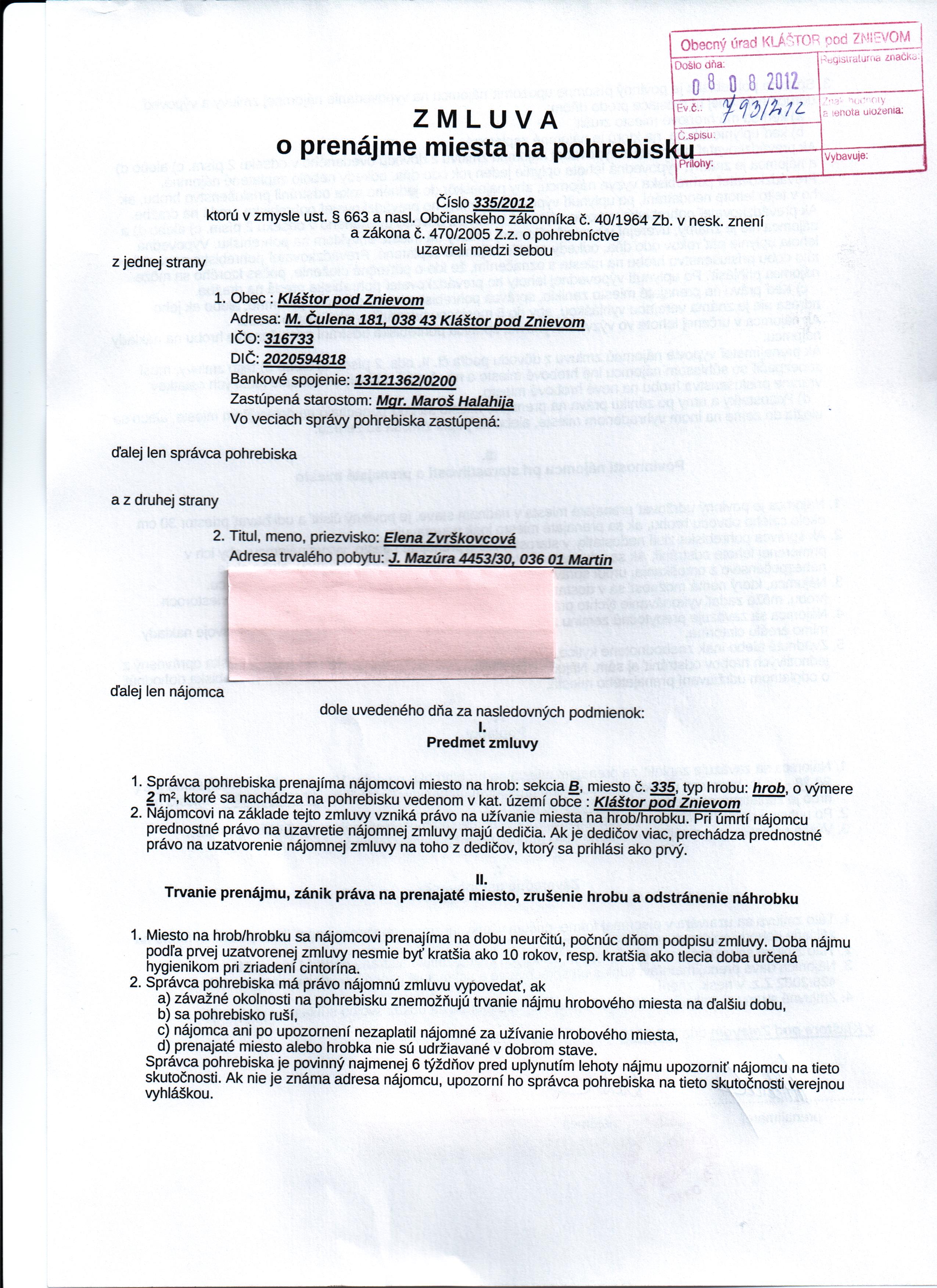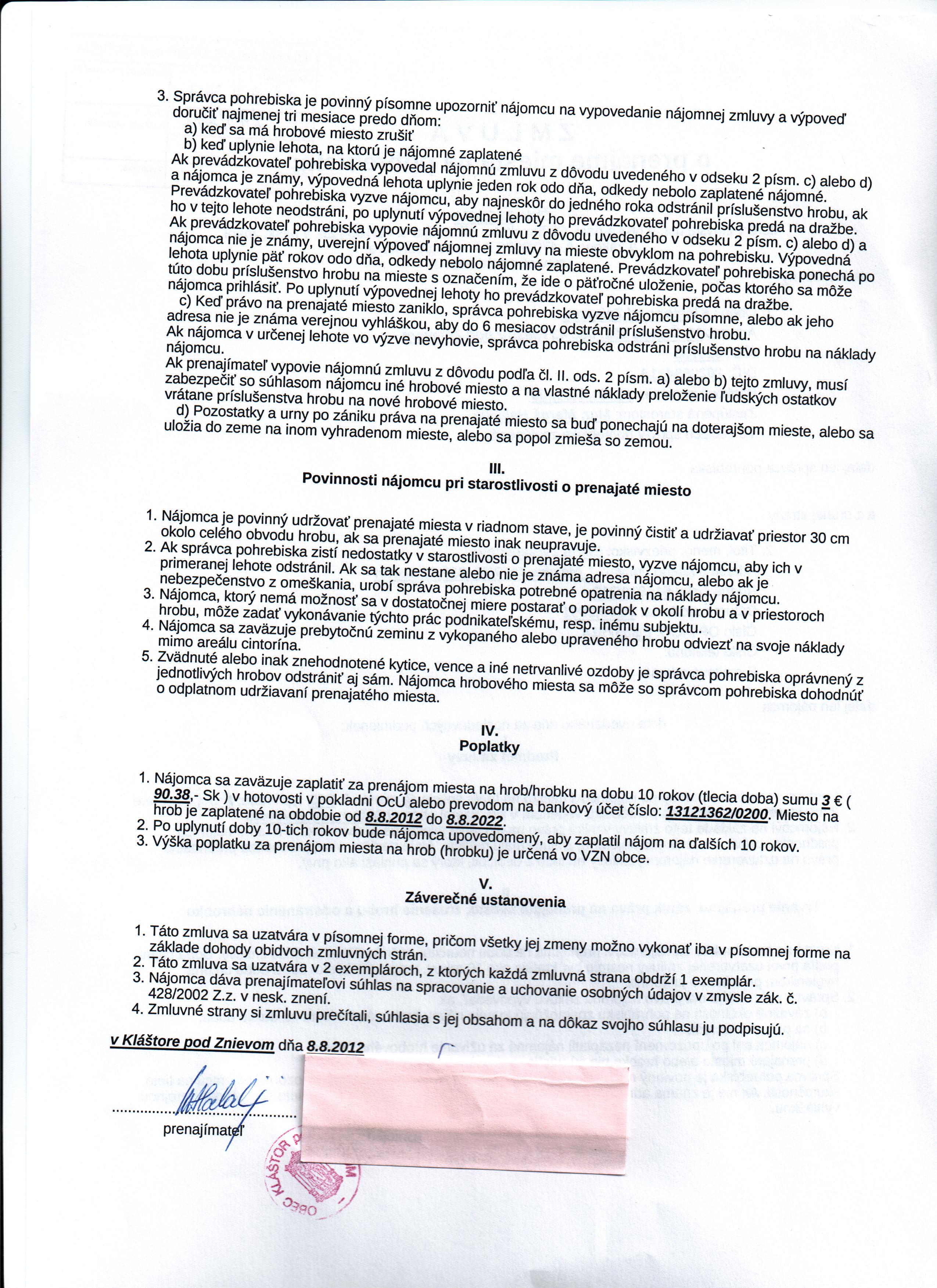 Názov:Zmluva o prenájme miesta na pohrebisku