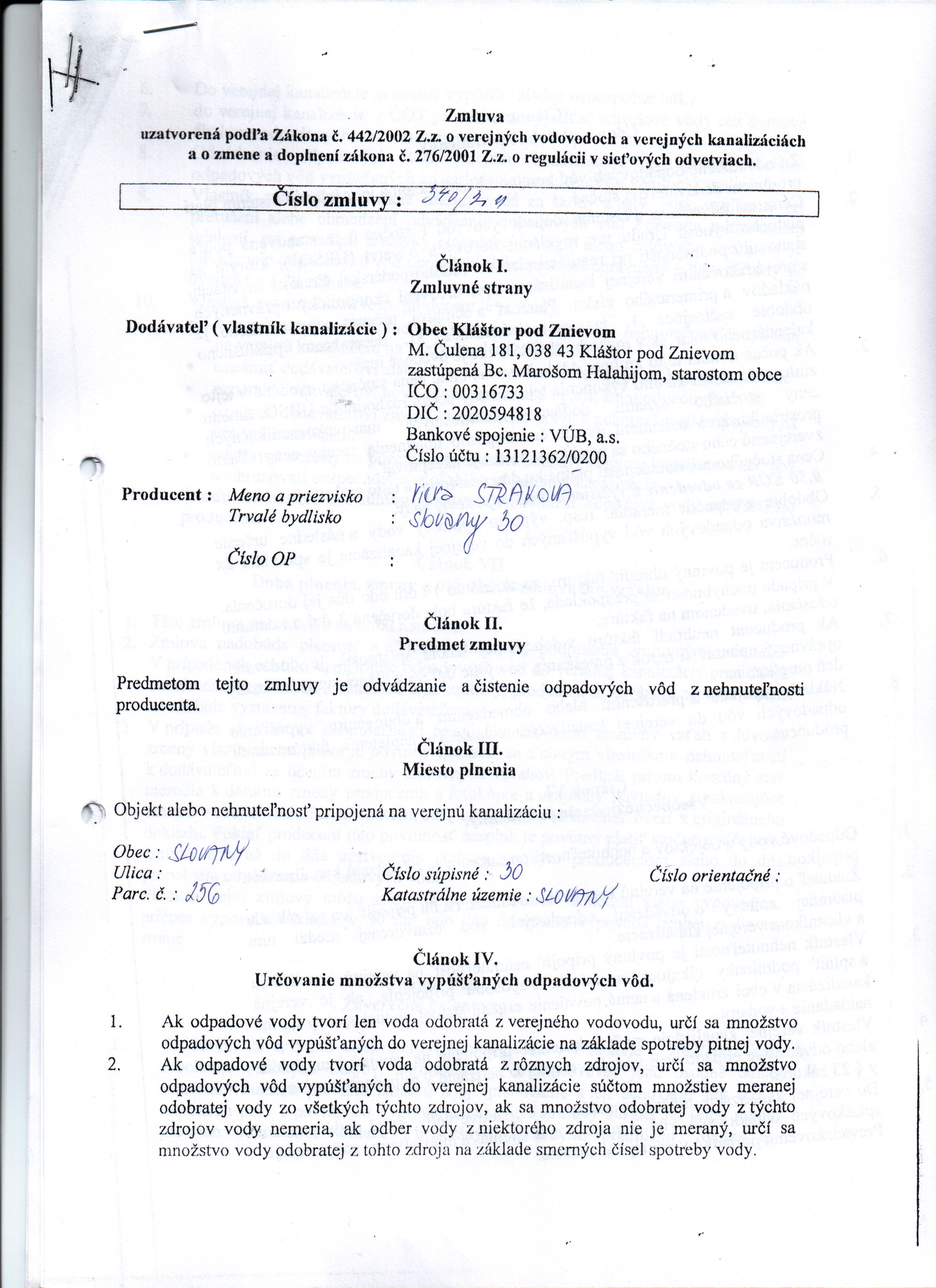 Názov:Zmluva o verejných vodovodoch a verejných kanalizáciách