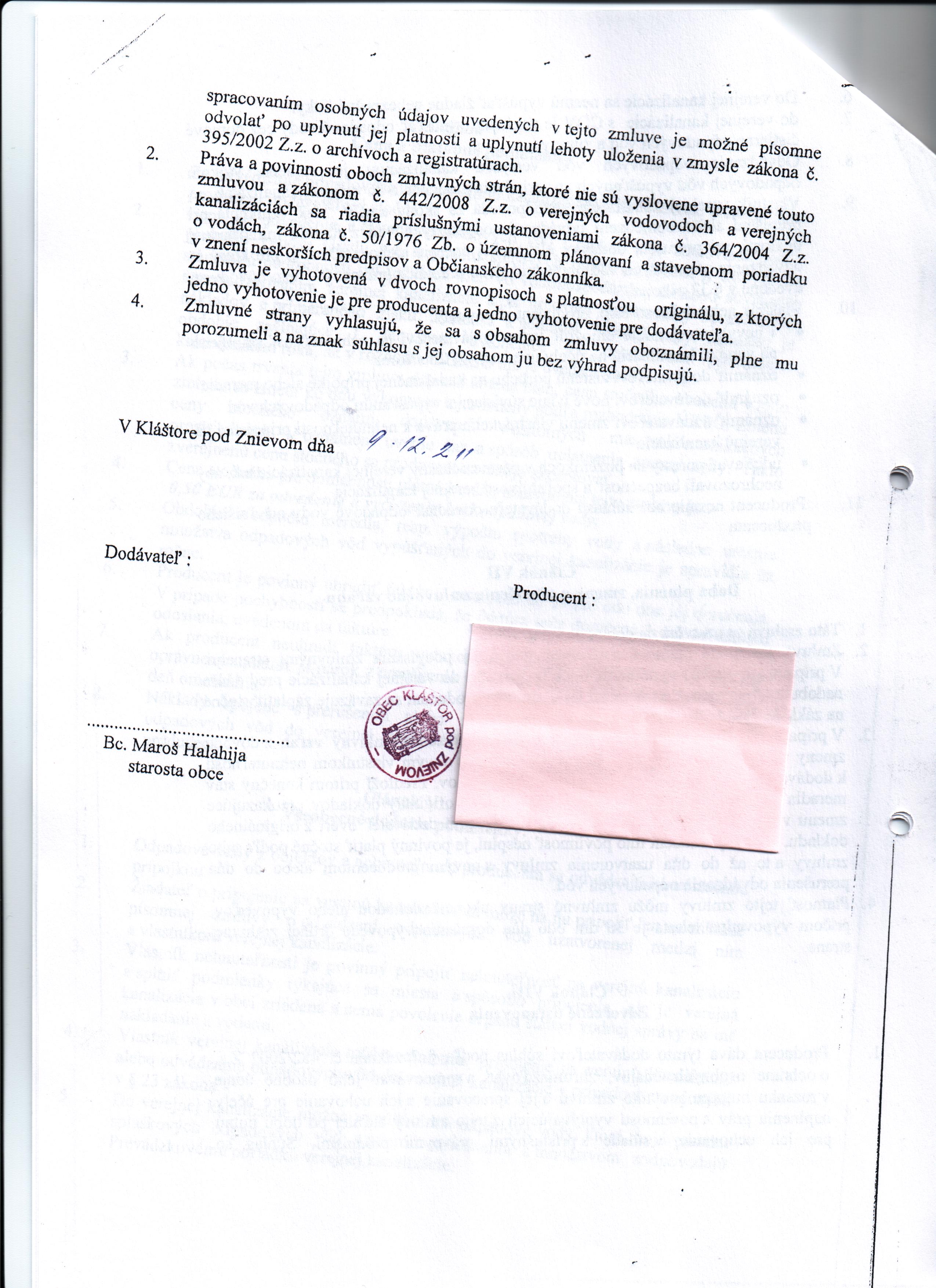 Zmluvy » subjekt: Obec Kláštor pod Znievom » rok: 2011