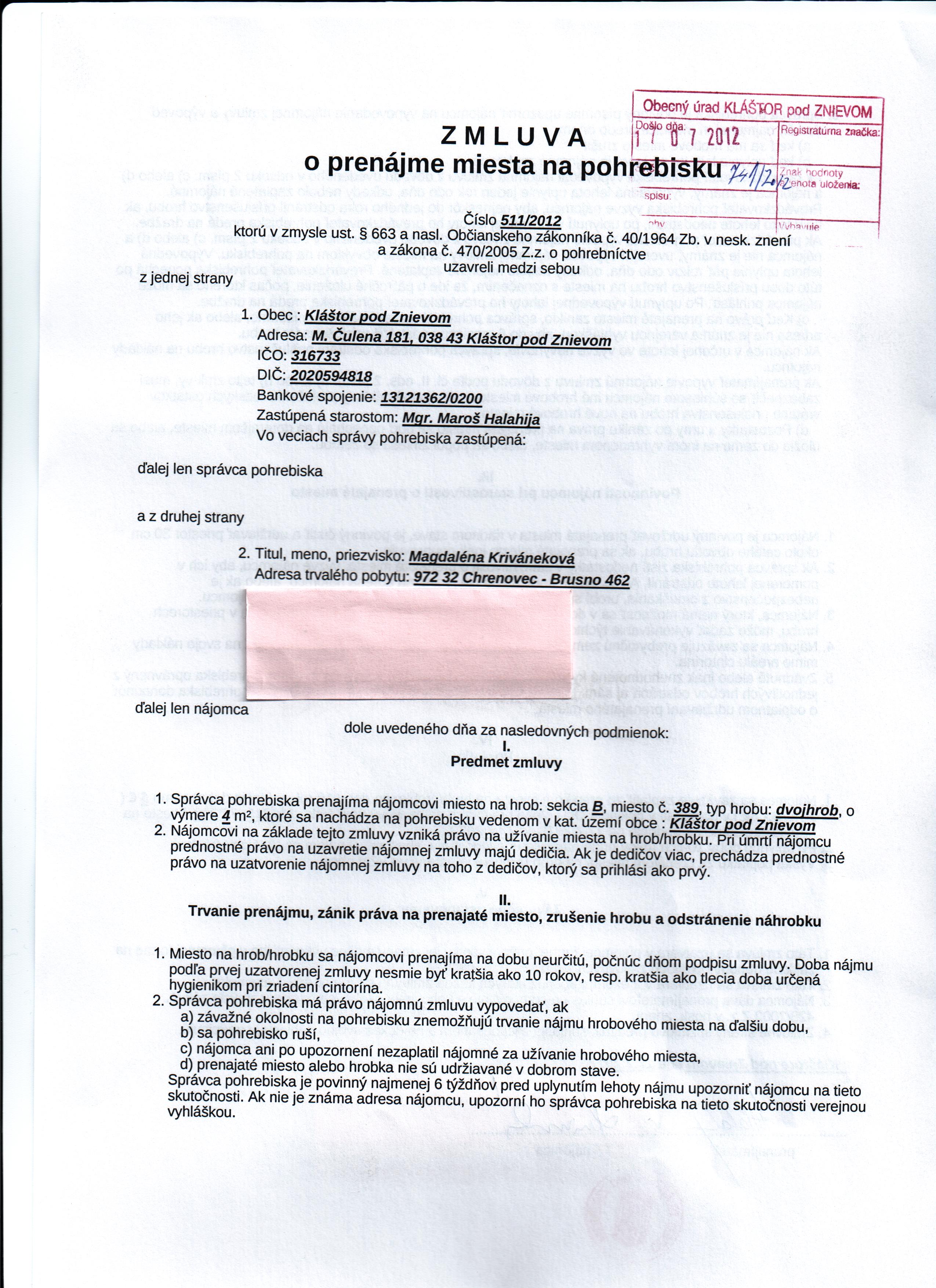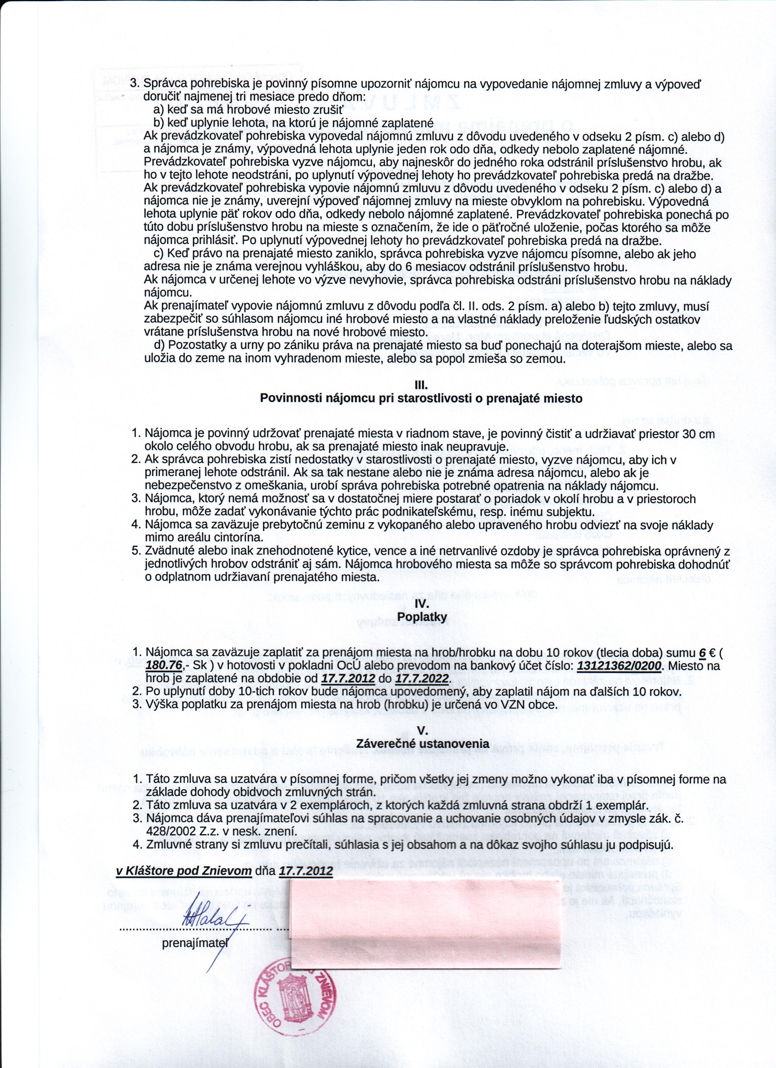 Názov:Zmluva o prenájme miesta na pohrebisku