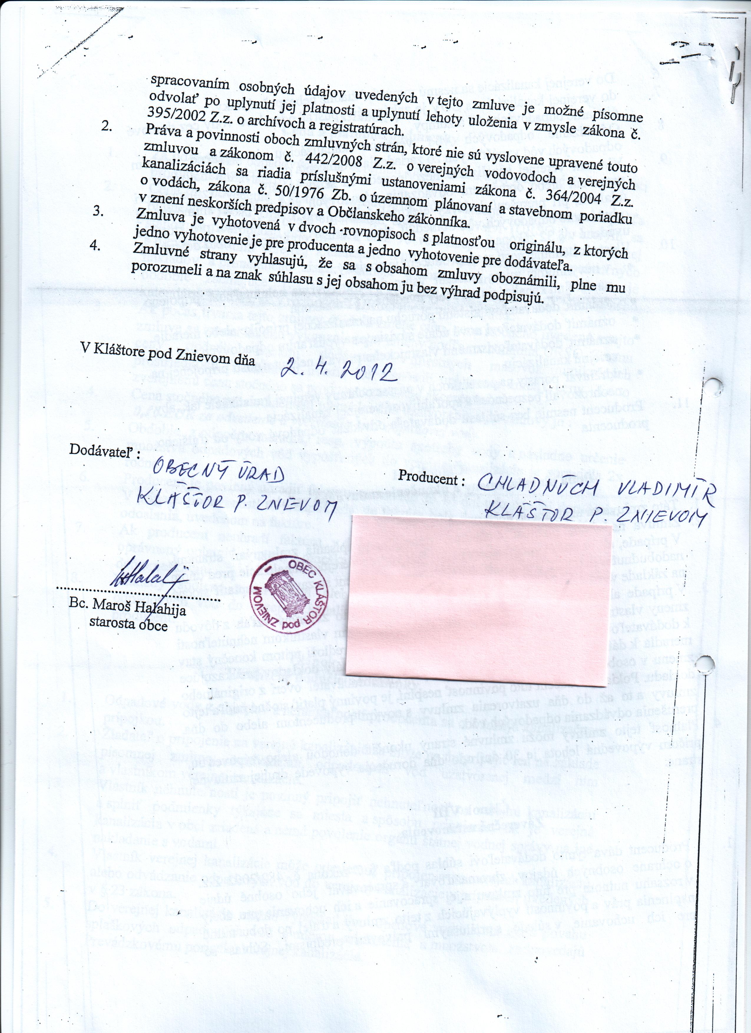 Zmluvy » subjekt: Obec Kláštor pod Znievom » rok: 2012