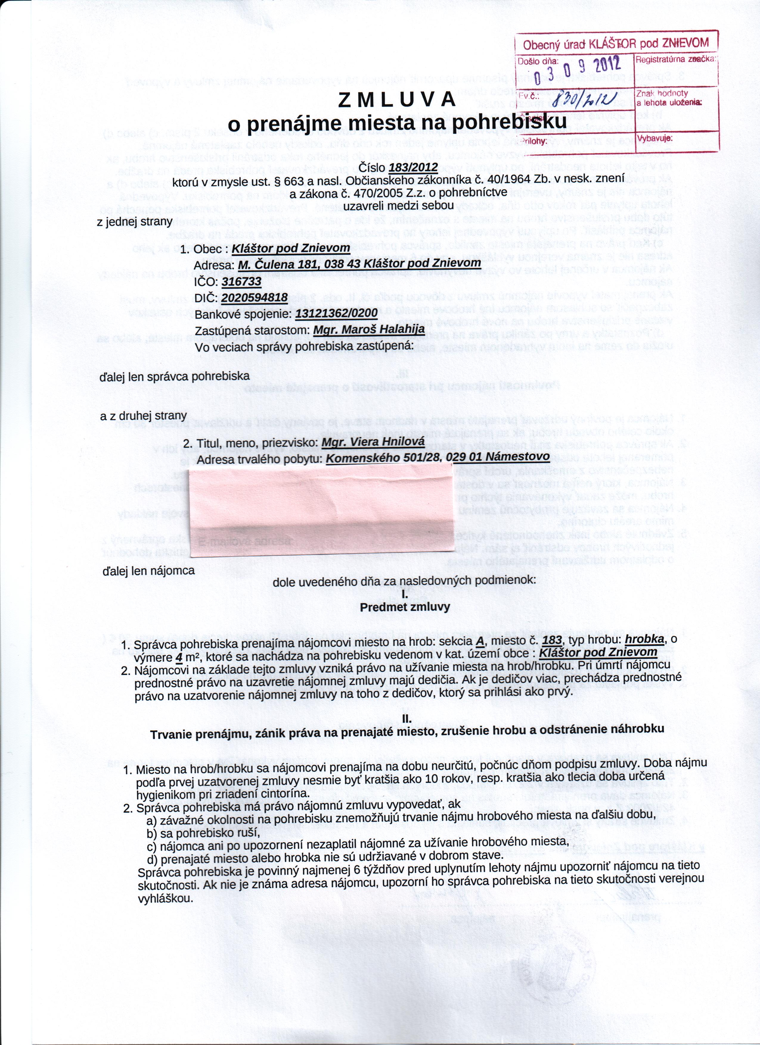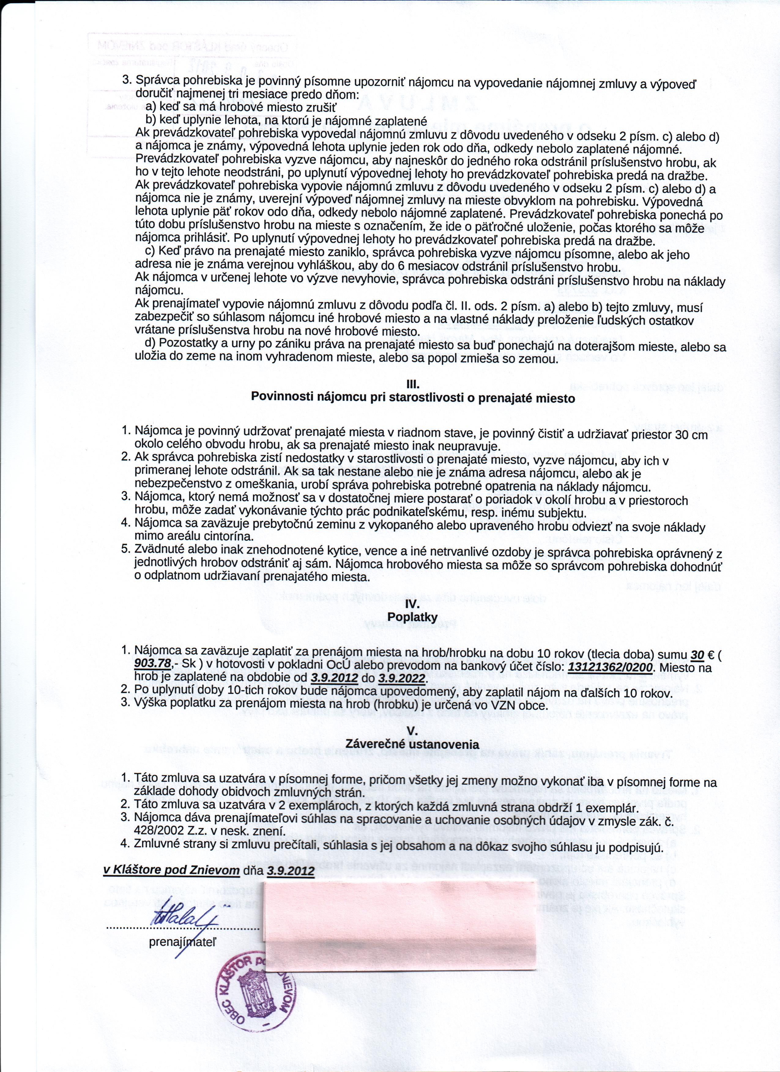 Názov:Zmluva o prenájme miesta na pohrebisku