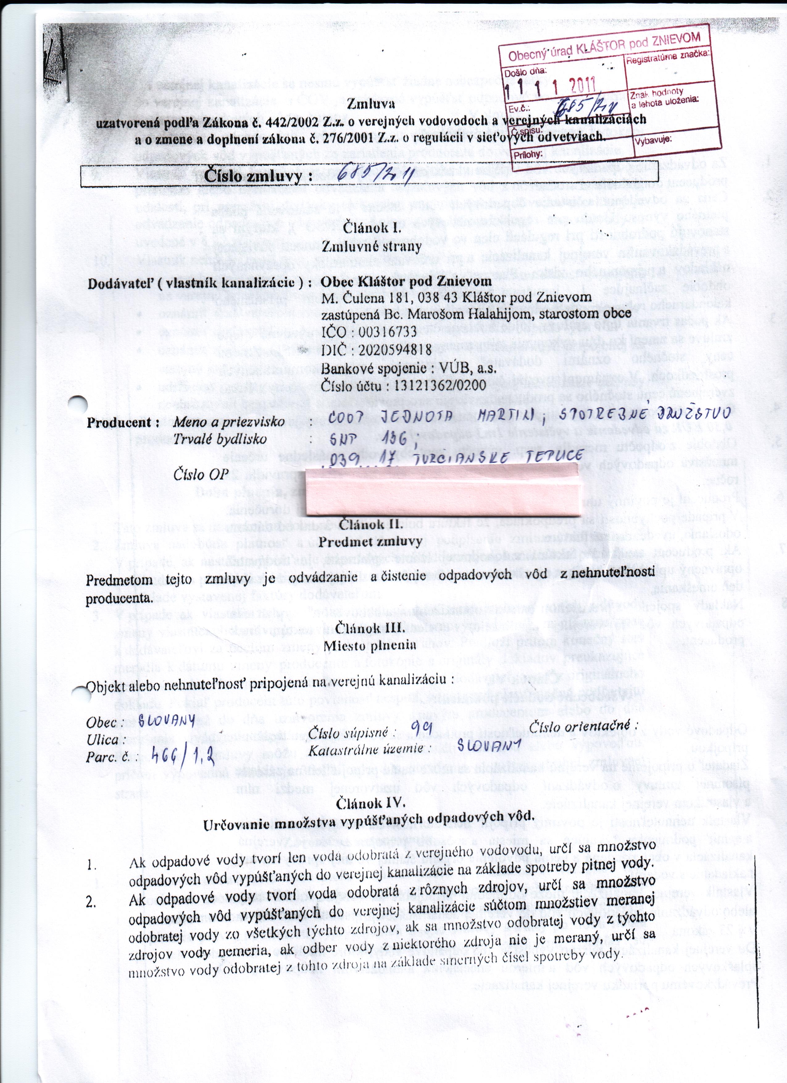 | Názov: | Zmluva o verejných vodovodoch a verejných kanalizáciách |